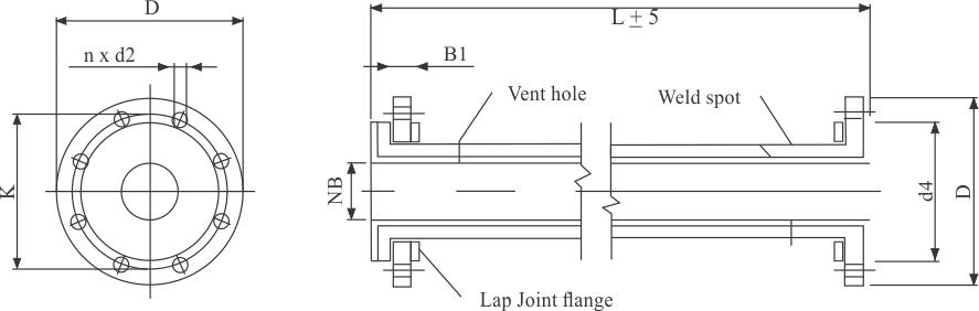 | NB | Lining Thickness | D4 | D | K | No. of Holes x Dia of Holes | Length max. | B1 | |